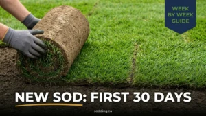 Your new sod care guide for the first 30 days. Week-by-week watering, mowing, and foot traffic rules for Ontario lawns, with a watering calculator.